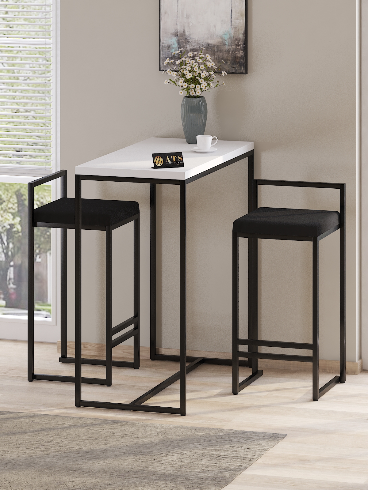 • Bar Masası Ölçüleri: Bar masası yüksekliği 93cm, genişlik 90 derinlik 40 cm